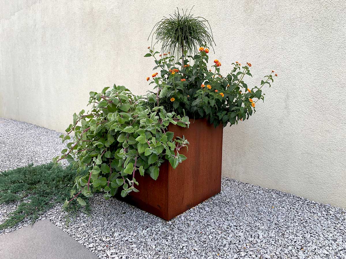 Donica metalowa - Corten CUBO 2 | wys. 45 cm, szer. 45 x 45 cm |