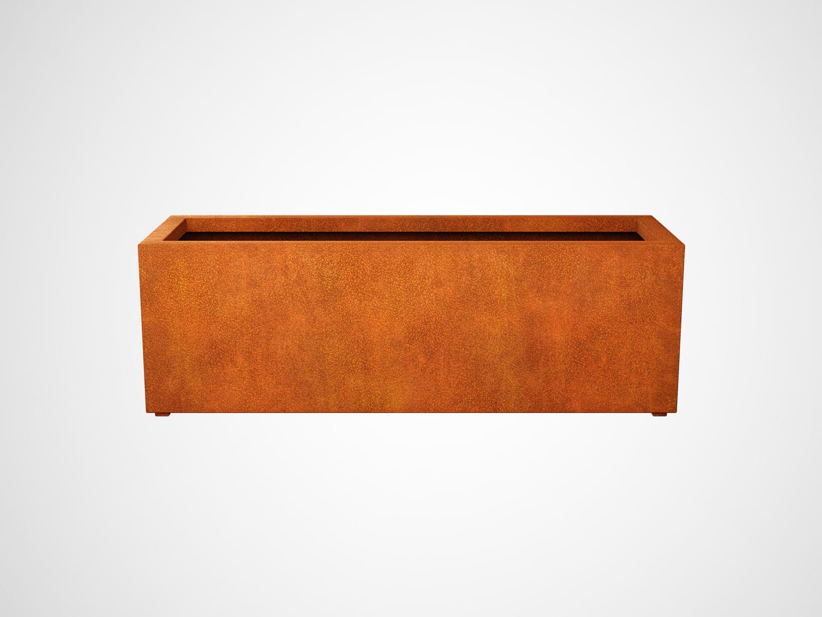 LARGO7 to średniej wielkości prostokątna donica ogrodowa. Została wykonana ze stali cortenowej o grubości 2mm. W standardzie donica wyposażona jest w otwory odpływowe umieszczone w dnie oraz nóżki.