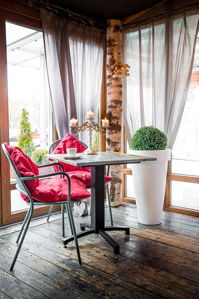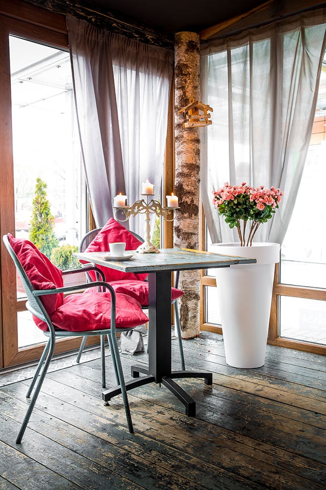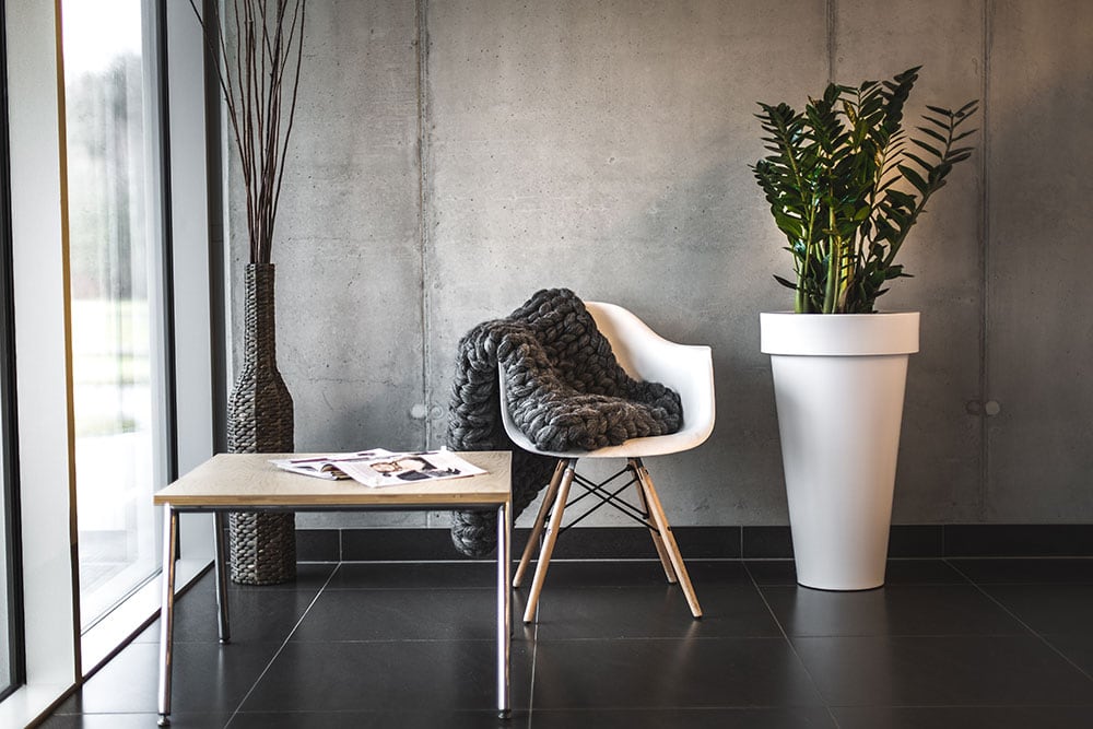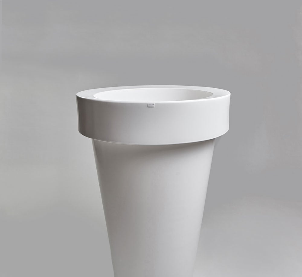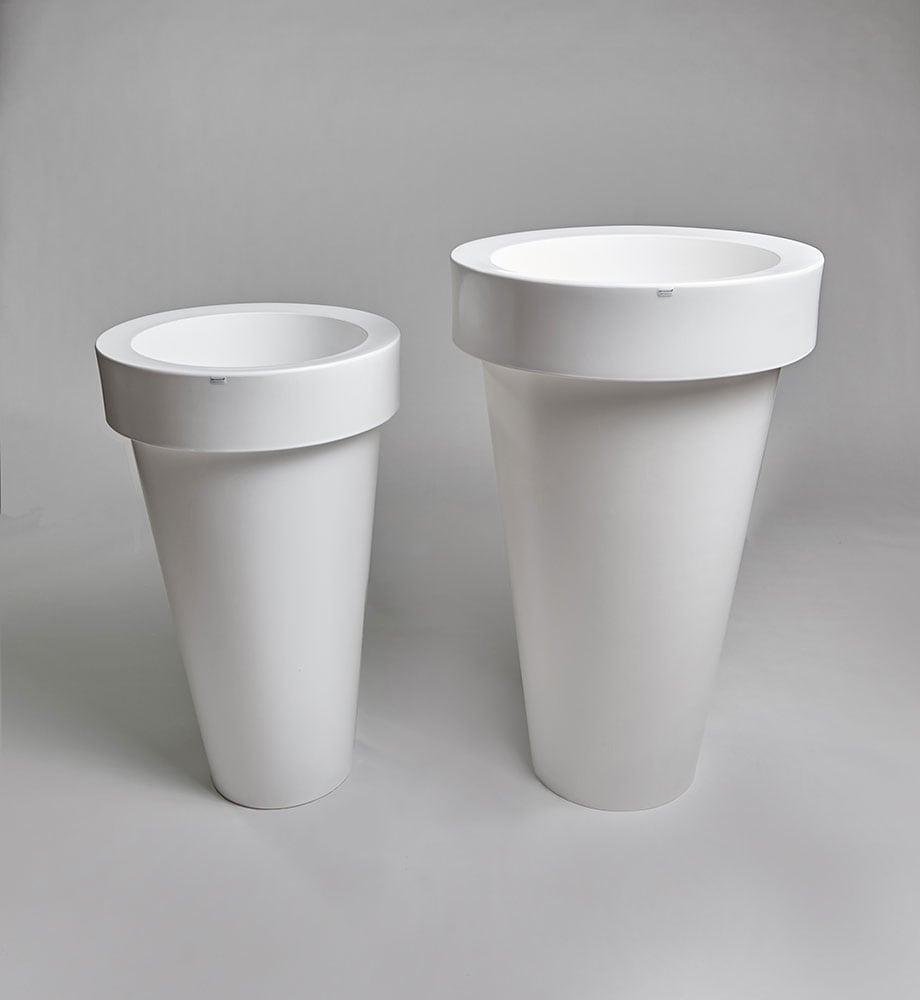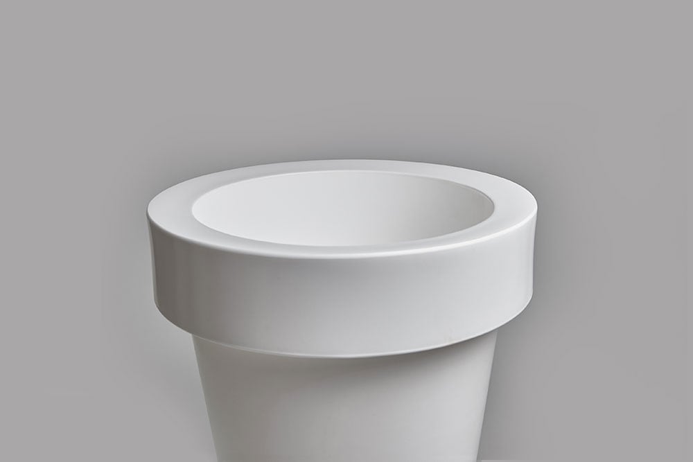 Donica ma kształt tuby, z szerszym kołnierzem na górze, który nadaje jej ponadczasowy wygląd oraz pomaga w przenoszeniu.