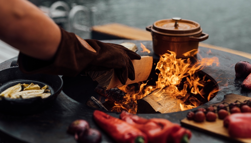 Ofyr to grill produkt premium i tak jest wykonany. Cała jego niezwykłość polega na ogniu. Rozpalamy drewnem w środku grilla i czekamy aż żar rozgrzeje jego pierścień, na którym możemy przygotowywać jedzenie. Możemy smażyć mięso, piec warzywa, a nawet owoce.