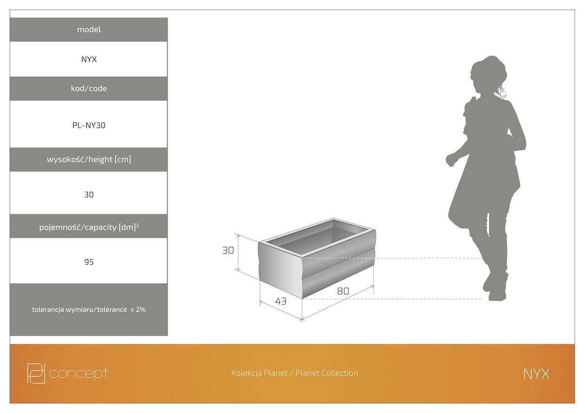 Podłużna donica Nyx | wys. 30 cm | dł. 80 cm |