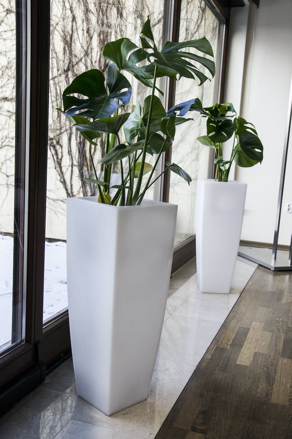 Duża donica Juno wykonana jest z wytrzymałego materiału polietylenowego, dzięki czemu ma bardzo dużą odporność na uszkodzenia mechaniczne. Jednocześnie donica Juno jest mrozoodporna oraz odporna na promieniowanie UV, dlatego donica sprawdzi się zarówno na zewnątrz jak i w salonie czy biurze. Donica ta tworzy niesamowity efekt w zestawieniu z większą donicą tego samego modelu.