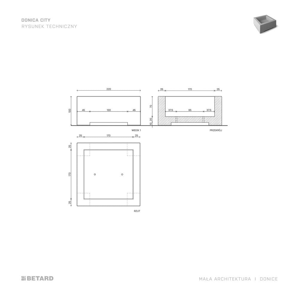 Donica City to potężny element małej architektury miejskiej, zaprojektowany z myślą o tworzeniu charakterystycznych i nowoczesnych przestrzeni. Wykonana z gładkiego betonu, przyciąga uwagę solidnością i minimalistycznym stylem, doskonale wpisując się w potrzeby współczesnych aranżacji.