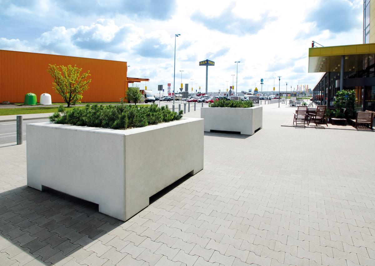 Prosta forma na planie kwadratu o boku długości aż 220 cm czyni tę donicę nie tylko funkcjonalnym, ale również efektownym elementem dekoracyjnym. Donica City stanowi idealne uzupełnienie otwartych przestrzeni, takich jak place, parki czy miejskie deptaki, podkreślając modernistyczny charakter otoczenia.