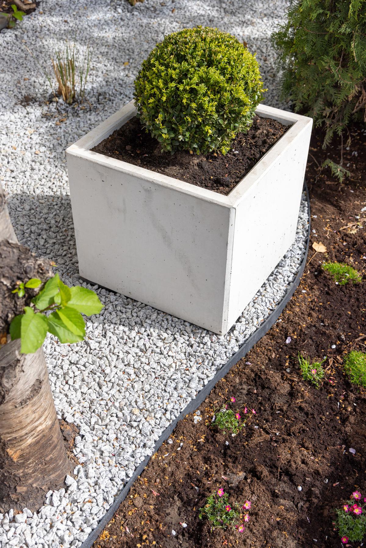 Donica Cubo wykonana jest z betonu z naturalnych składników, co może powodować delikatne różnice w odcieniach pomiędzy poszczególnymi egzemplarzami.