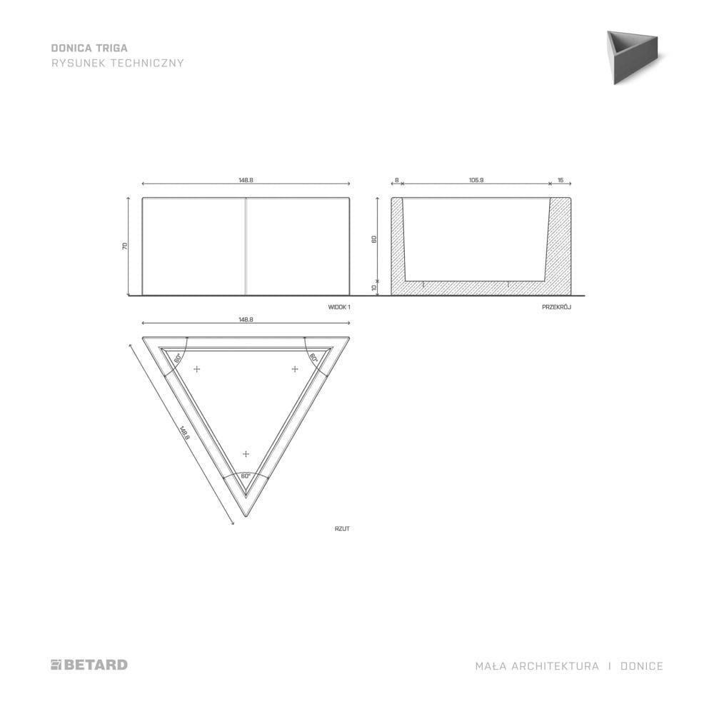 Donica Triga, oparta na podstawie równobocznego trójkąta, to nowoczesne rozwiązanie, które doskonale sprawdza się w przestrzeniach wymagających nietuzinkowych aranżacji zieleni. Jej geometryczna forma pozwala na stworzenie efektownych kompozycji, idealnych zarówno do przestrzeni publicznych, jak i prywatnych ogrodów.