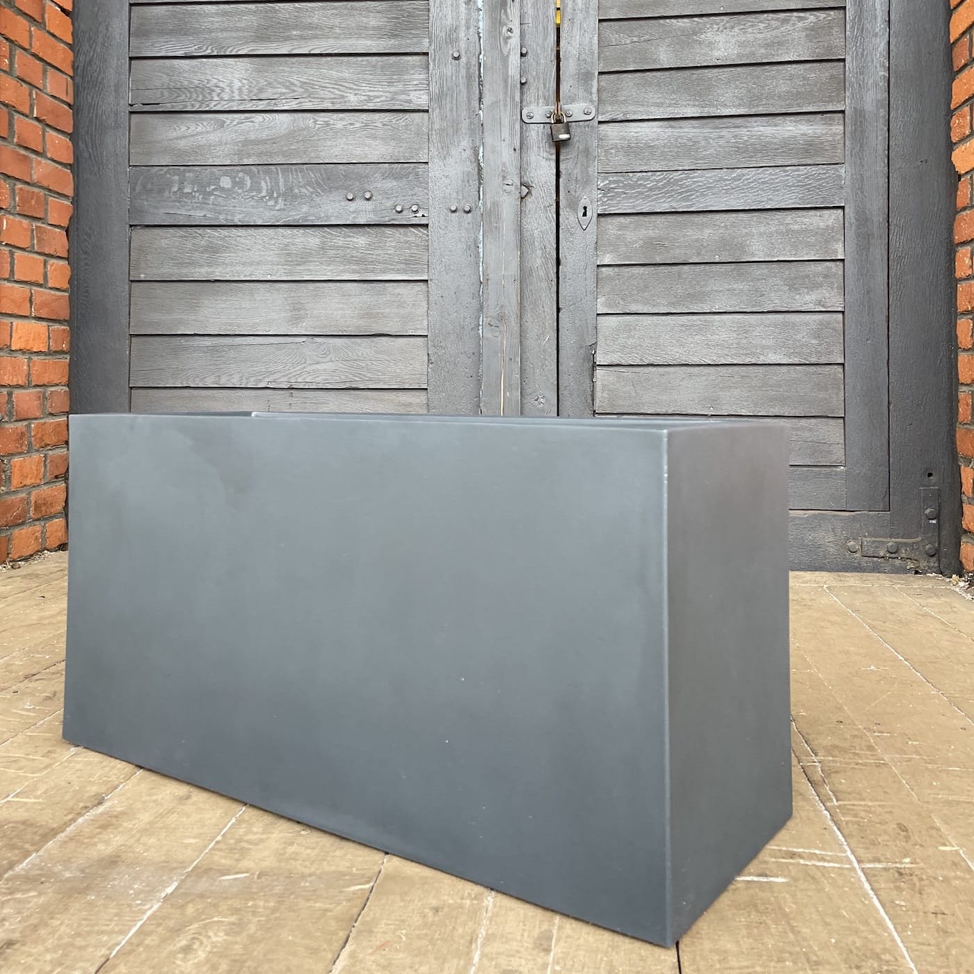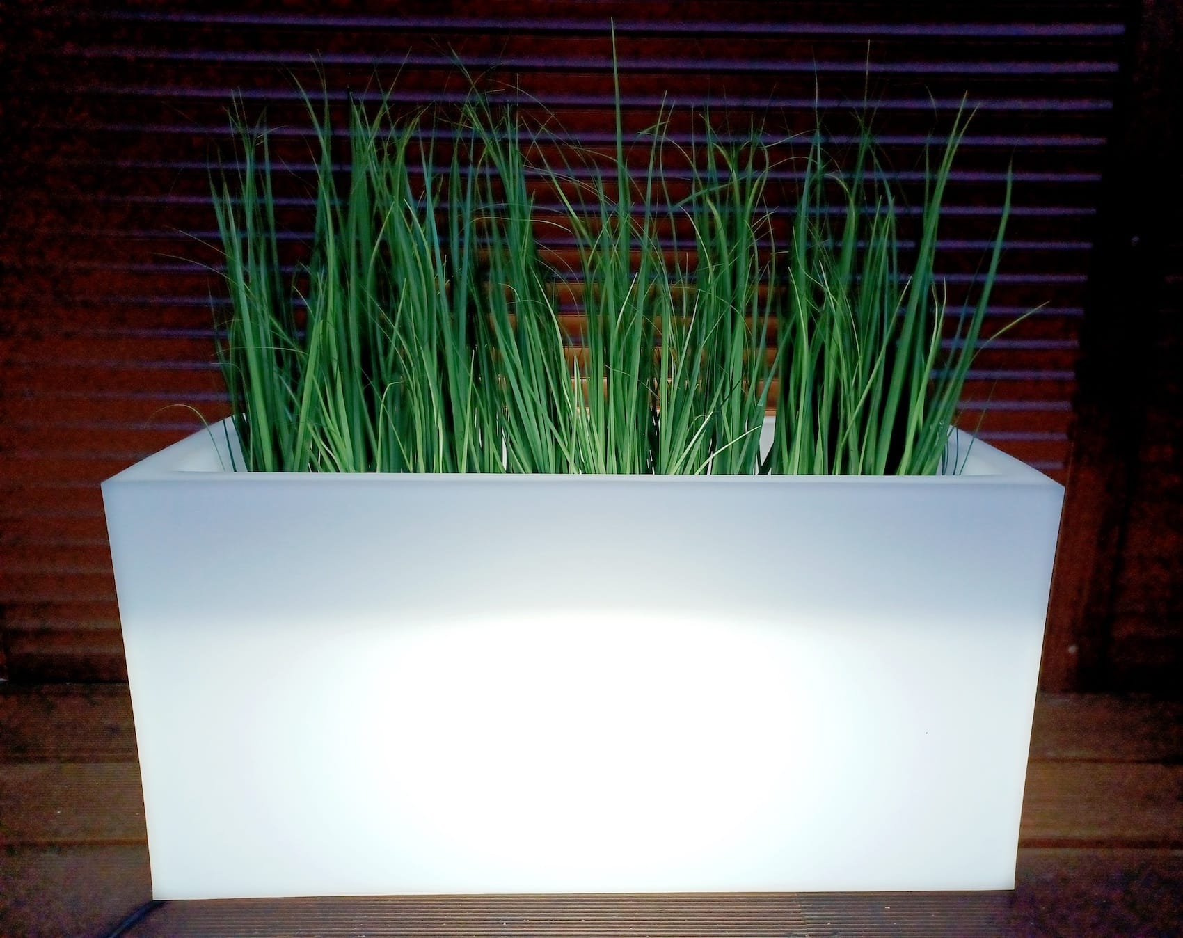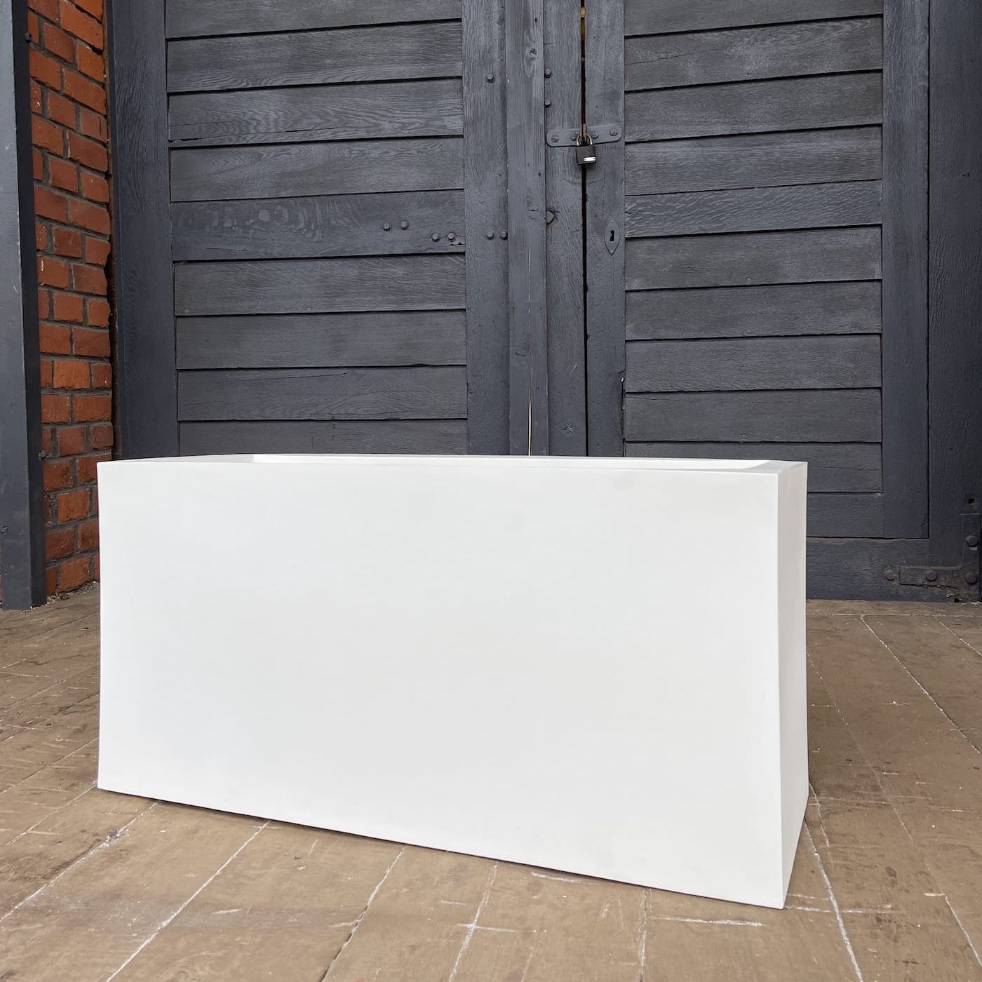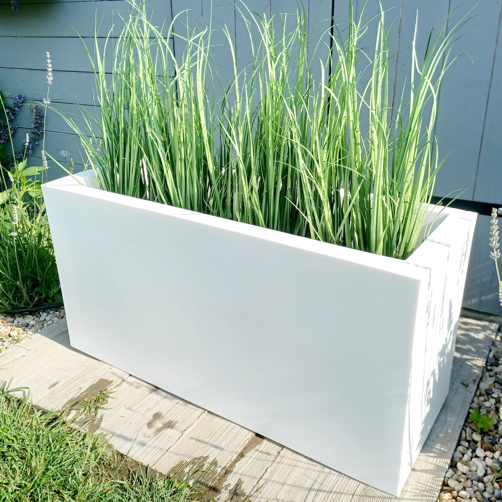 Duża prostokąta donica z wytrzymałego polietylenu sprawdza się zarówno na zewnątrz w ogrodzie, jak i w domu.