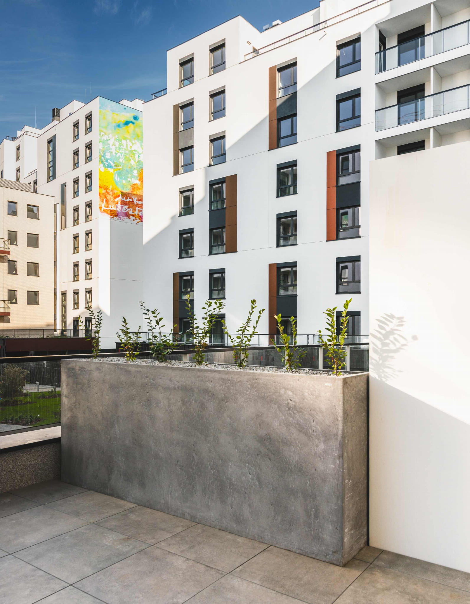 Donica betonowa kwadratowa z włókna szklanego może zostać wykonana z półka na dowolnej wysokości.