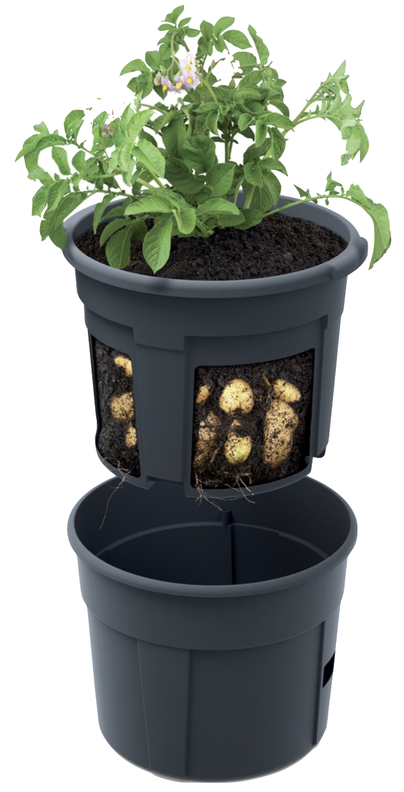 Specjalna doniczka do hodowania ziemniaków. Umożliwia nawet obrywanie młodych ziemniaków, bez uszkodzenia rośliny.