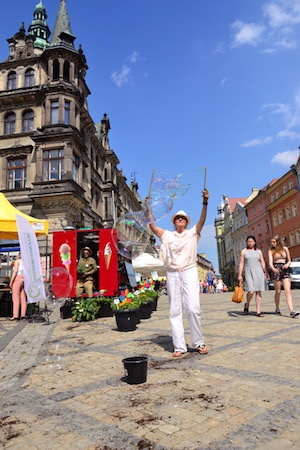 Gdy kiełki nam się skończyły, co dość szybko miało miejsce, zaczęliśmy konkursy z nagrodami, w których można było wygrać zestawy do robienia baniek, kwiatki oraz lody od naszych znajomych - Lodziarni Papa Marco. Nie tylko dzieci chętnie odgadywały ziołowe zagadki, ale także puszczały z nami bańki mydlane. Najwięcej chętnych przyciągną rzut klapkiem Lemigo do celu. Dużo Pań miało z tym problem, choć myśleliśmy, że po tylu latach wychowywania mężów i dzieci, rzut przysłowiowym „papciem” będzie błahostką. Niestety rzut lekkim klapkiem z pianki EVA, był wyzwaniem i grono osób odchodziło zawiedzionych, bez pysznej gałki lodów.