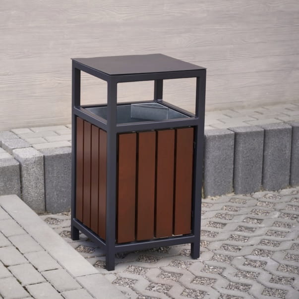 Miejski kosz na śmieci z daszkiem 42x42x81h