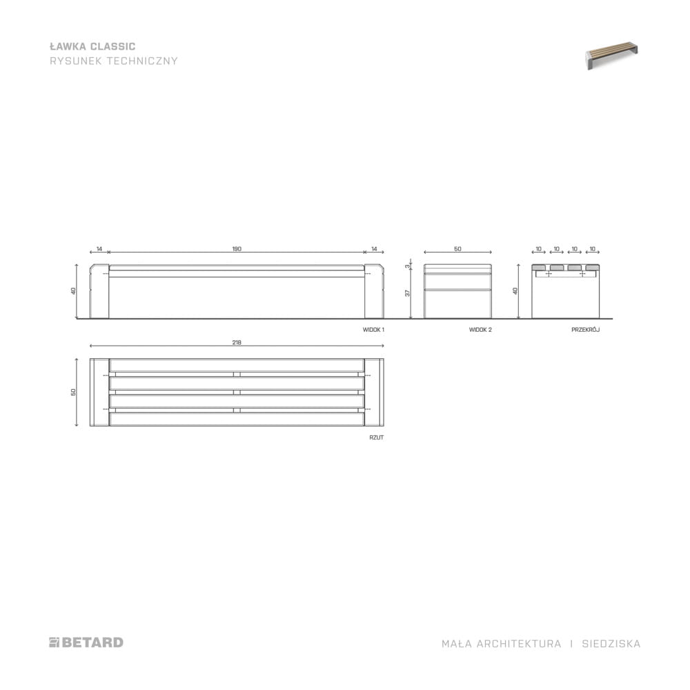 - Rodzaj produktu: Betonowa ławka z drewnianym siedziskiem