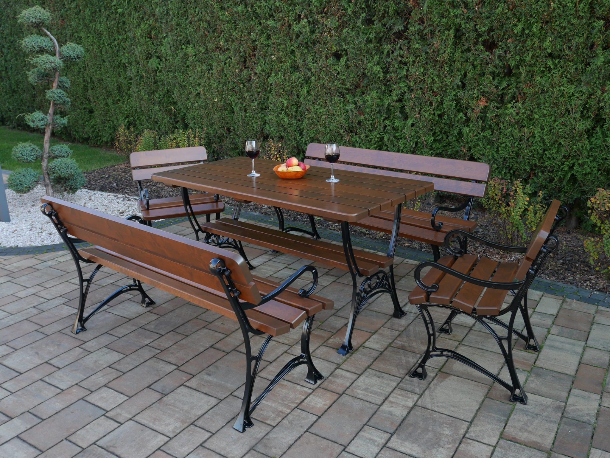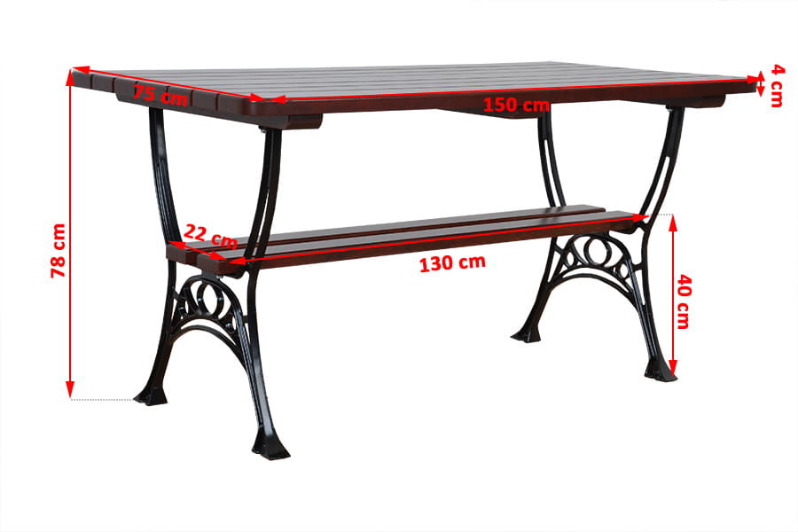 Stół królewski 150 cm + 2 ławki + 2 krzesła z podłokietnikami