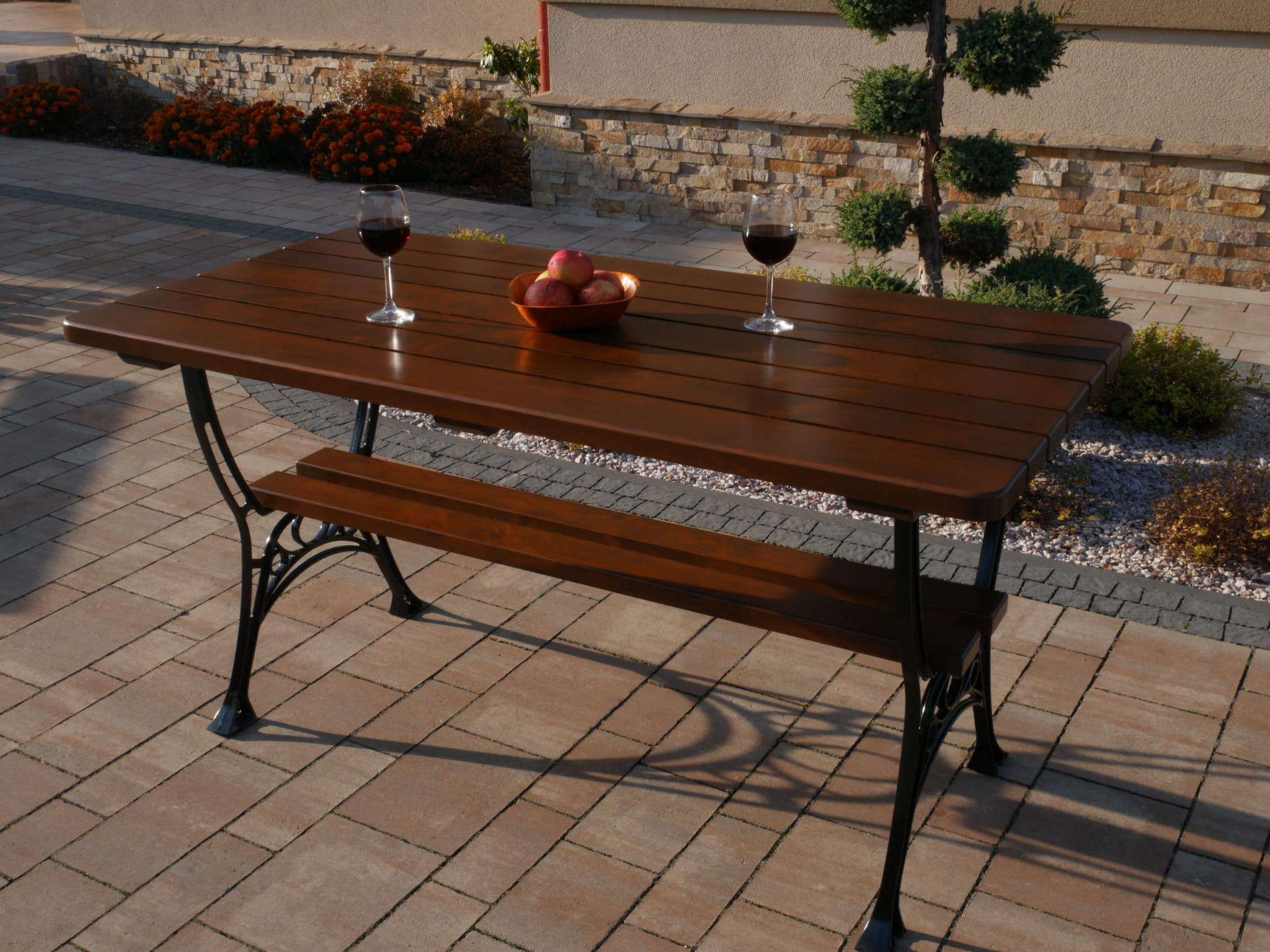 Stół królewski + 2 ławki + 2 krzesła z podłokietnikami