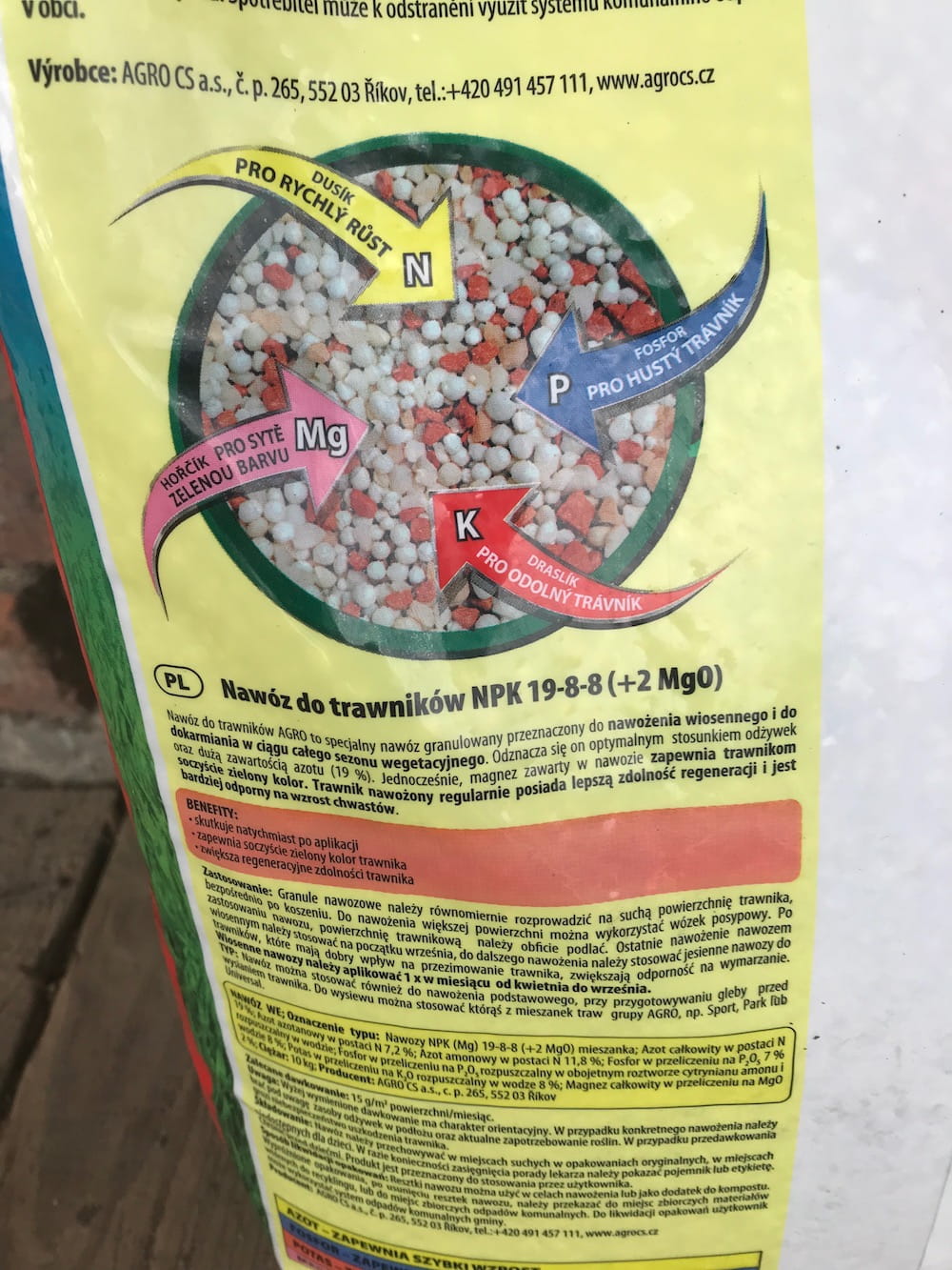 Nawóz do trawy Agro CS zawiera wszystkie potrzebne składniki pokarmowe, które potrzebne są do zasilenia trawnika. Zaopatruje trawnik kompleksowo, bez obawy, że któraś z ważnych z funkcji życiowych rośliny nie będzie małą potrzebnych składniku do zaistnienia.