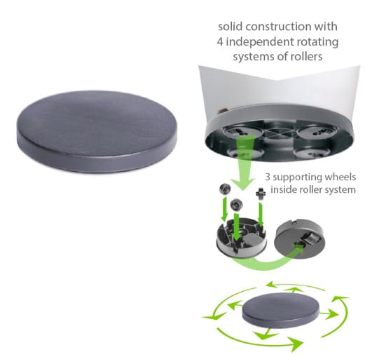 Posiadająca kółeczka platforma pozwala na obracanie doniczek o 360 stopni bez ryzyka uszkodzenia podłóg lub donic plastikowych, glinianych, czy ceramicznych.