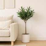 Sztuczne drzewko oliwne to elegancka dekoracja, która wnosi do wnętrza śródziemnomorski klimat i naturalną harmonię. Charakterystyczne drobne listki w odcieniach zieleni i szarości oraz smukły pień wiernie odwzorowują wygląd prawdziwego drzewa oliwnego. Dzięki starannemu wykonaniu z wysokiej jakości materiałów drzewko prezentuje się bardzo realistycznie i jest trwałe przez wiele lat.