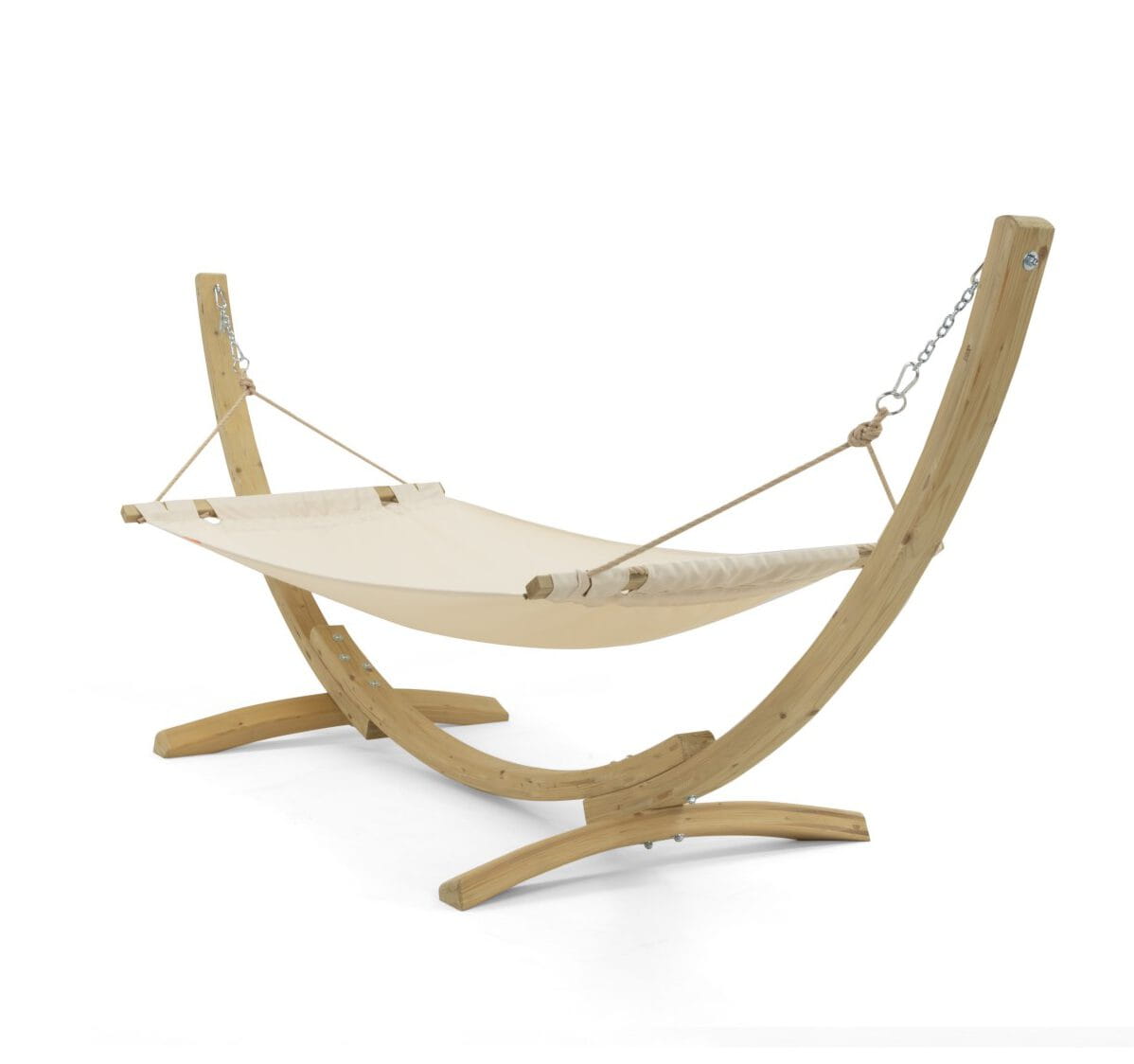 - Drewniane drążki o długości 100 cm, stabilizujące hamak i zapobiegające jego zwijaniu się.