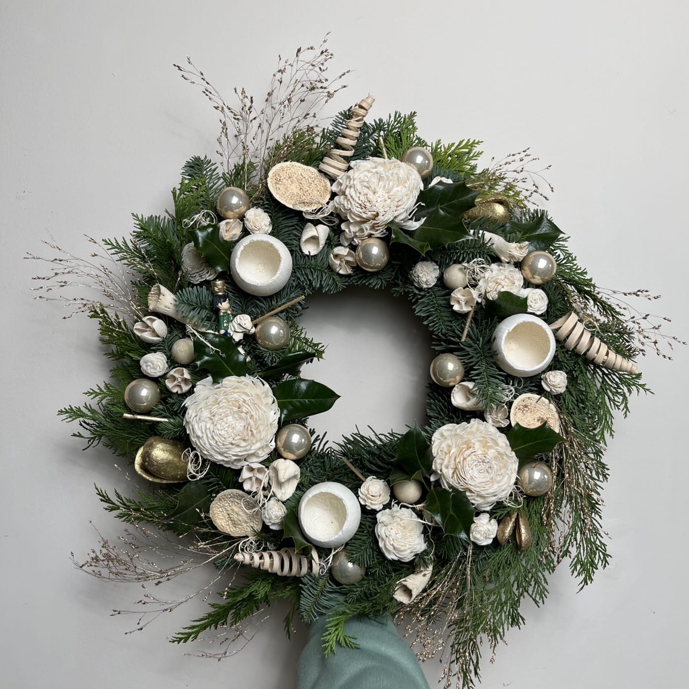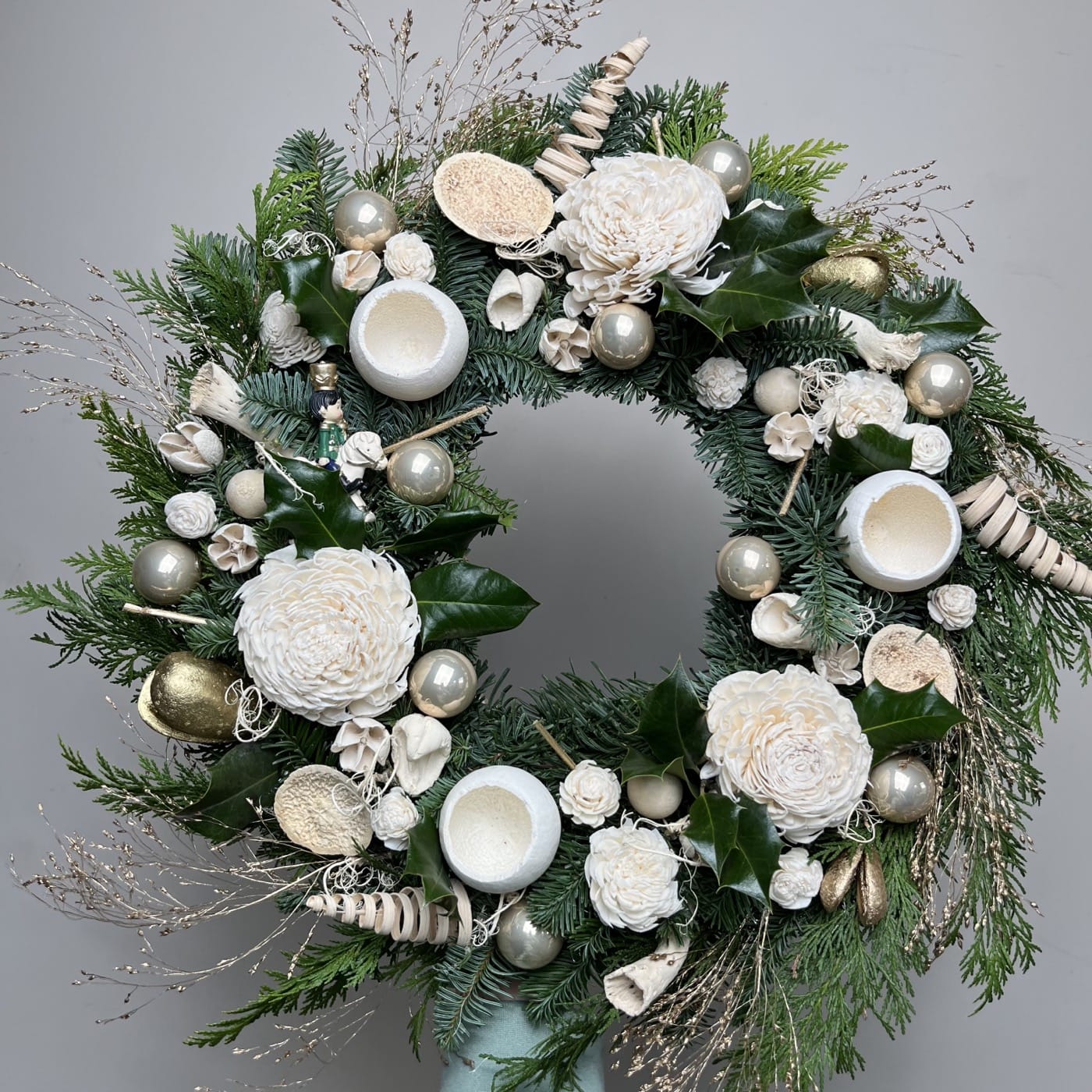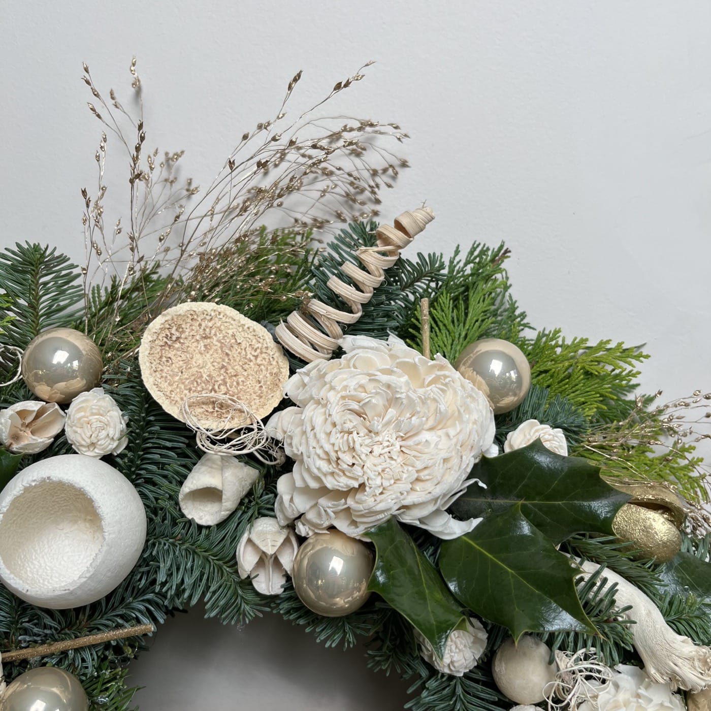 Wianek bożonarodzeniowy z suszu i świeżej igliwi 40 cm