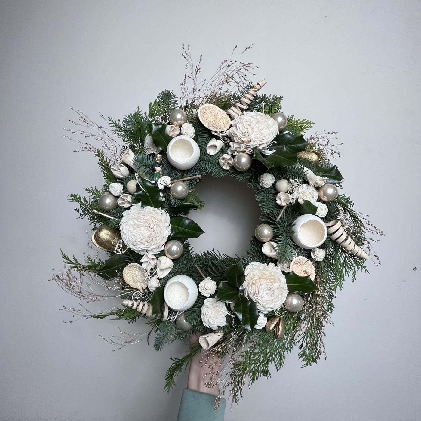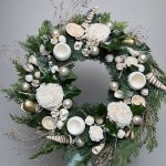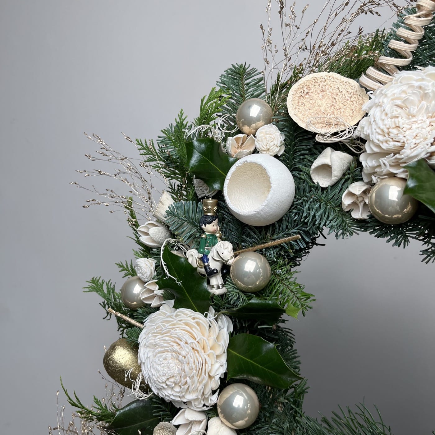 Wianek bożonarodzeniowy na drzwi intensywnie pachnie świeżymi igłami sosny oraz świerku, którym towarzyszą suszone ozdoby trwale umocowane na drewnianej podstawie. Wieniec taki jak na zdjęciu jest tylko jeden, ponieważ staramy się robić niepowtarzalne kompozycje przy tworzeniu kolejnych sztuk. Możemy wykonać takie kolejne na zamówienie w różnych barwach. Napisz do nas jakie kolory Cię interesują, a my stworzymy być może jeszcze piękniejszy niż ten na zdjęciu podglądowym!