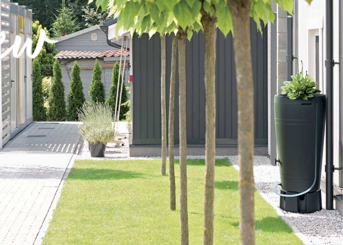 Zbiorniki na deszczówki zdecydowanie coraz lepiej wtapiają się w ogród i stanowią część jego małej architektury.