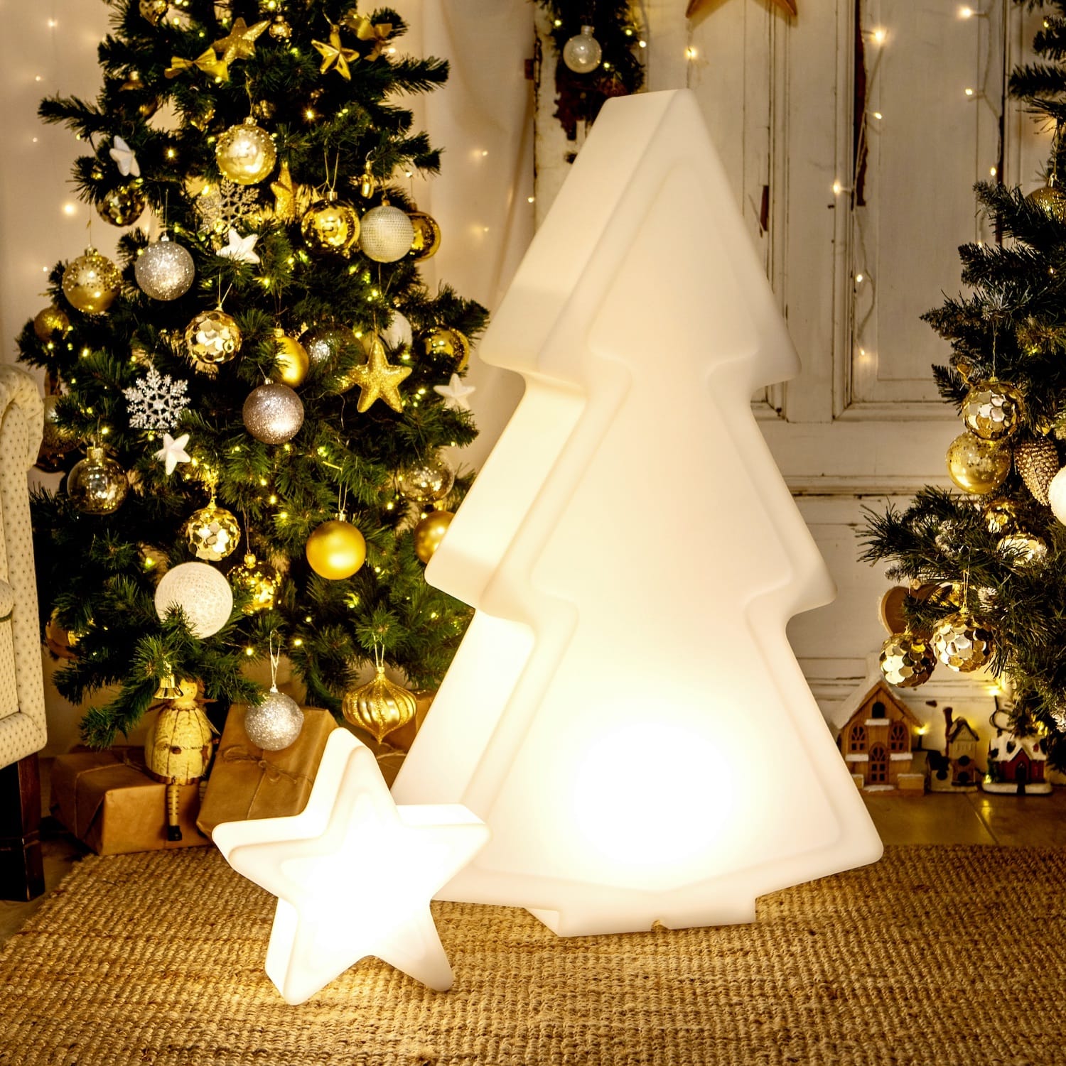 Rozświetl swoją przestrzeń wyjątkowym zestawem podświetlanych ozdób do ogrodu i domu. Choinki i gwiazdy LED są wykonane z trwałego polietylenu, który jest solidnym i mrozoodpornym materiałem. Dzięki swojej mlecznej barwie podświetlane będą doskonale przewodzić światło, a zarazem wyglądać świetnie w ciągu dnia.
