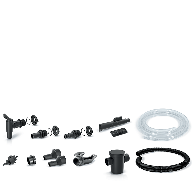 Zestaw składa się z 13 elementów: otwornicy, kranika, uniwersalnego przyłącza, węża ogrodowego, wylewki, wieszaka, reduktora, węża, filtra zewnętrznego i łapacza.